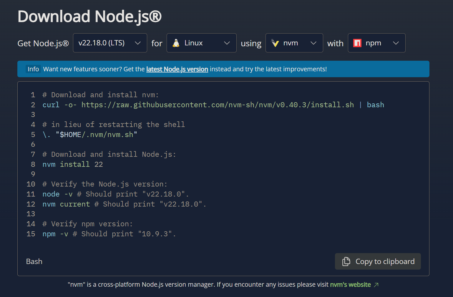 curl -o- https://raw.githubusercontent.com/nvm-sh/nvm/v0.40.3/install.sh | bash