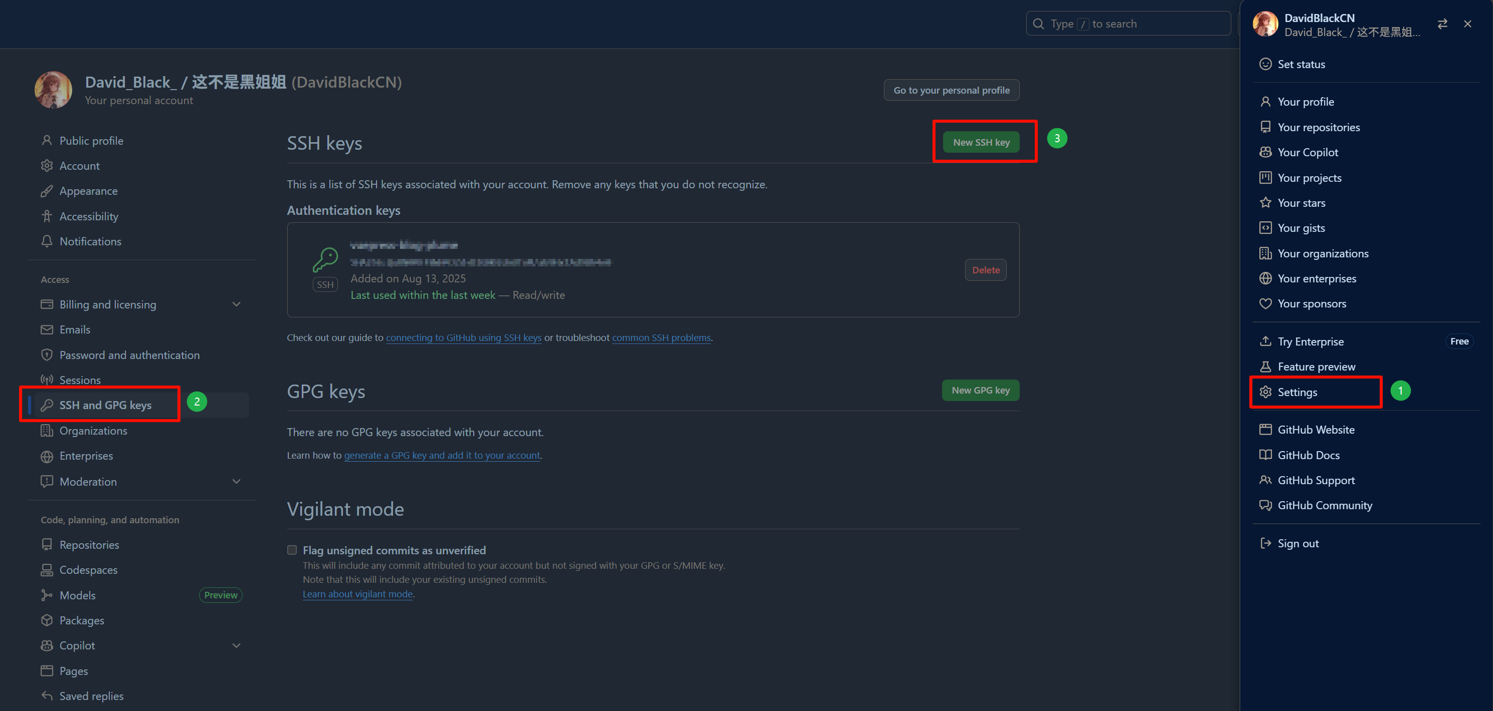 ssh-keygen -t rsa -C "你的邮箱地址"连续回车三次,会在Linux(云服务器)的~/.ssh文件里生成公钥 id_rsa.pub 和私钥 id_rsa ,公钥用于Github的SSH key