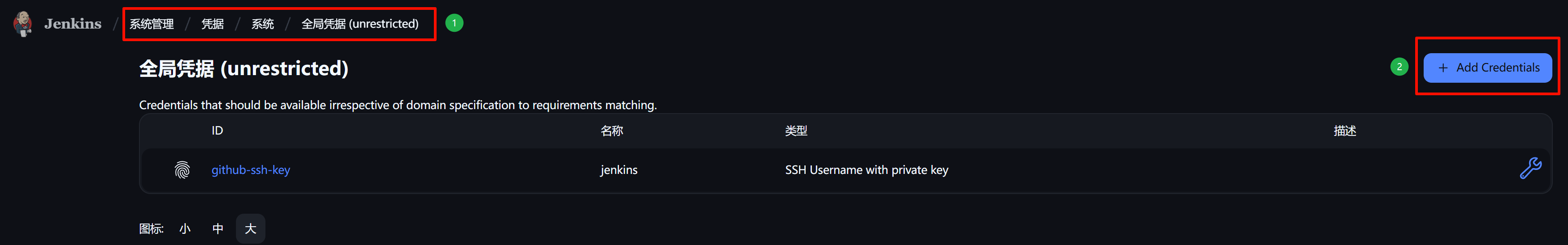 - 获取私钥的值,新建凭据并添加到Credentials中